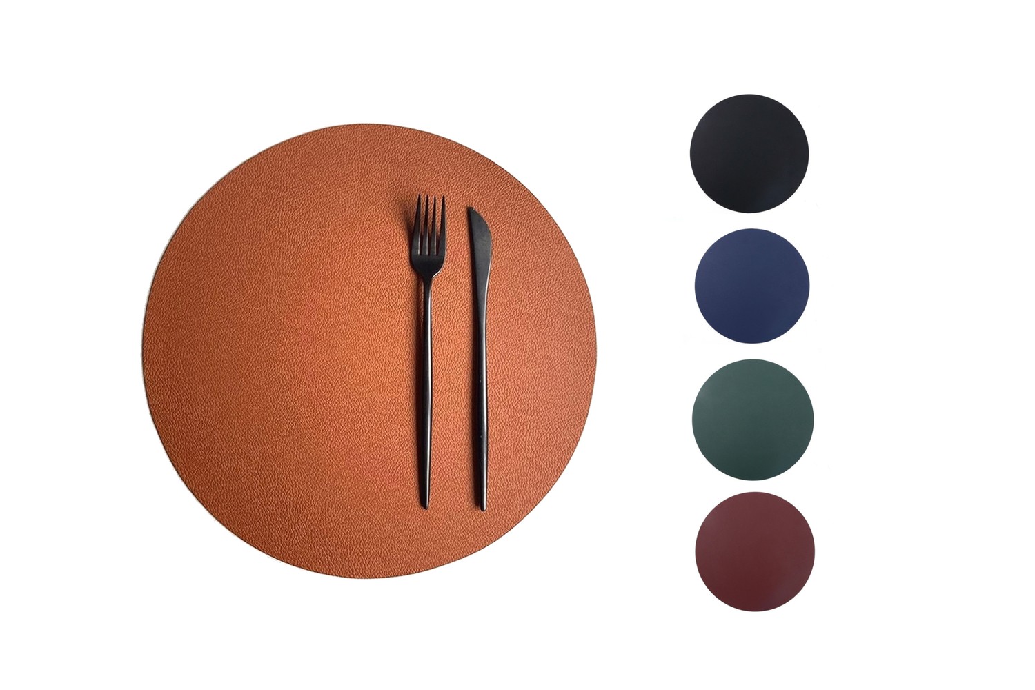 Kreativa toppar runda bordstabletter, fuskläder, grå/marinblå, 29 cm, set med 4 bordsmattor