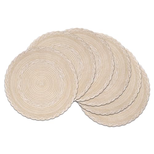 Pauwer 38 cm vävda runda bordstabletter 6 delar värmeisolering halkfria flätad bomull middagsbordsmattor tvättbara hållbara bordstabletter för hemmafest bröllop restaurang (beige)