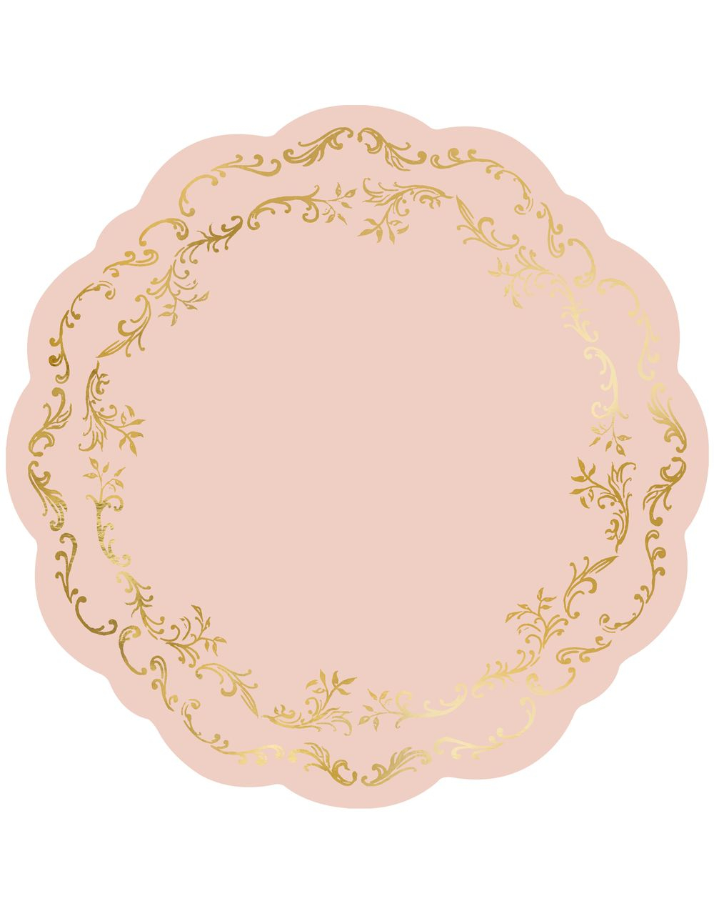 6 stk Eleganta Runda Bordstabletter – Rosa med Guldmönster