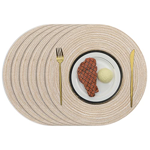 SHACOS Runda Bordstabletter Uppsättning av 6 Bordsunderlägg för Matbord Tvättbara Värmebeständiga Set of 6 Guld