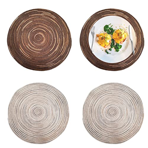 4 stycken runda bordstabletter tvättbar, runda vävda bordstabletter, halkfria värmebeständiga tvättbara bordstabletter, för matbord, bar, vardagsrum (kaffefärg, grå)