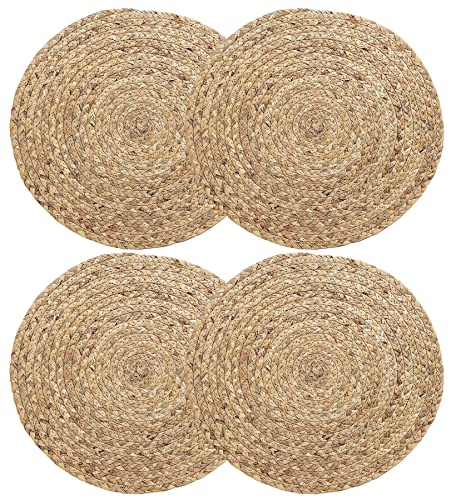 WENFOME 4 delar runda vävda bordstabletter, 35 cm tallrikladdare naturliga flätade bordstabletter vattenhyacint sugrör flätade bordsmattor rotting bordstabletter rustika vävda bordstabletter för