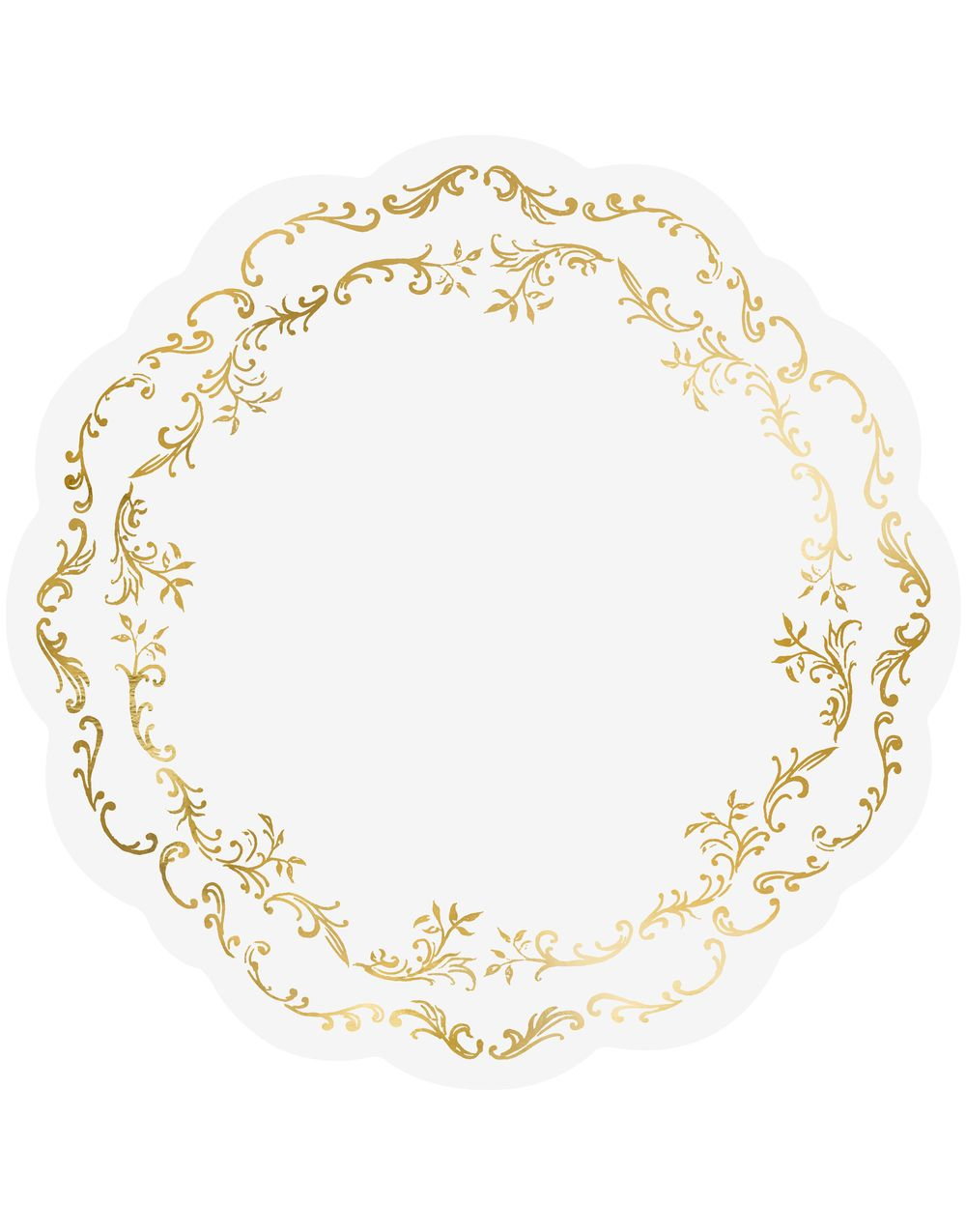 6 stk Eleganta Runda Bordstabletter – Vit med Gulddesign