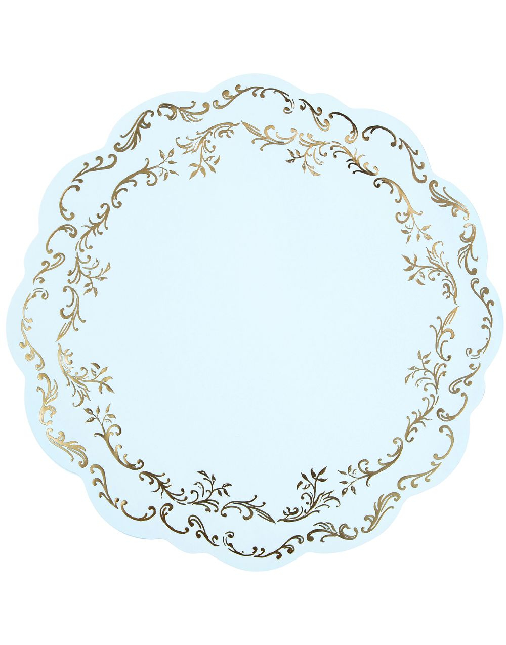 6 stk Eleganta Runda Bordstabletter – Ljusblå Med Guldfärgat Mönster