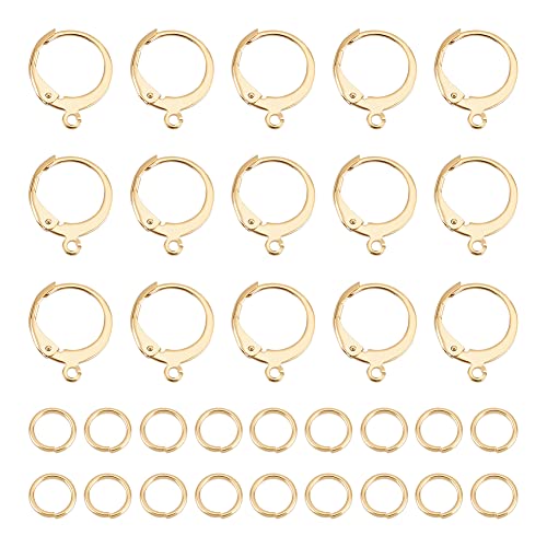 UNICRAFTALE 40 st gyllene runda spakörhängen krokar 14,5 x 12,5 mm franska örhängen krokar i rostfritt stål och 60 st öppna hoppringar hypoallergen örontråd