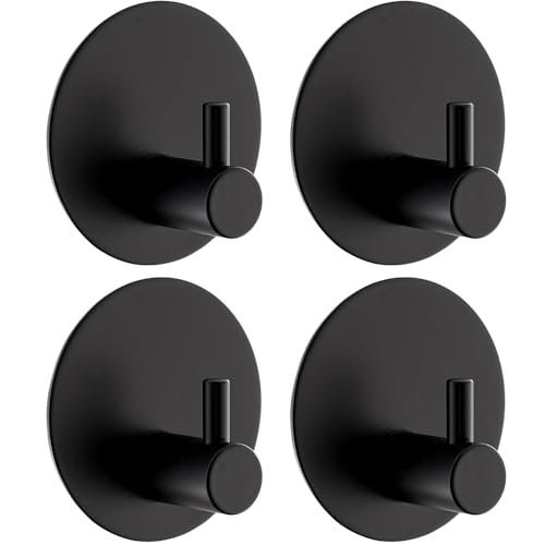 Drenky Svarta självhäftande krokar ingen borrning 4-pack vattentäta handdukskrokar för badrum runda krokar i rostfritt stål för upphängning med självhäftande dynor för badrum kök