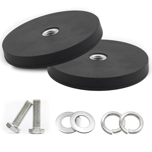 Beatific 2 stycken neodymmagneter gummerade, Ø 88 mm gummi runda magneter, 55 kg lastkraft, starka gummerade magneter halkskydd med M10 inre gänga hål, för skruvar ögla eller krokar