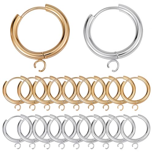 SUNNYCLUE 1 låda 12 st huggie ring spakbacks 18 mm spak örhänge fynd äkta 24K guldpläterad rostfritt stål spak tillbaka örhänge krokar runda gångjärn ringar örhängen krok för smyckestillverkning