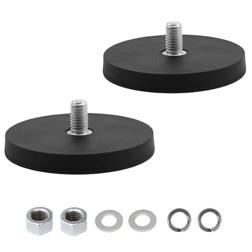 ULIBERMAGNET 2 st 27 kg runda magneter med neodymgummi täckt med M8 hangängad plugg, stark magnetisk hållare för belysning, kamera, verktyg och utrustning