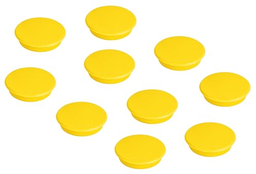 FRANKEN Magneter runda, 10 stycken, högkvalitativa självhäftande magneter för kontor, hushåll, verkstad, perfekt för whiteboards, kylskåp, plantavlor eller montrar, 24 mm, gul, HM20 04