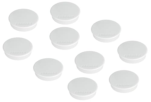 FRANKEN Magneter runda, 10 stycken, högkvalitativa självhäftande magneter för kontor, hushåll, verkstad, perfekt för whiteboards, kylskåp, plantavlor eller montrar, 38 mm, vit, HM38 09