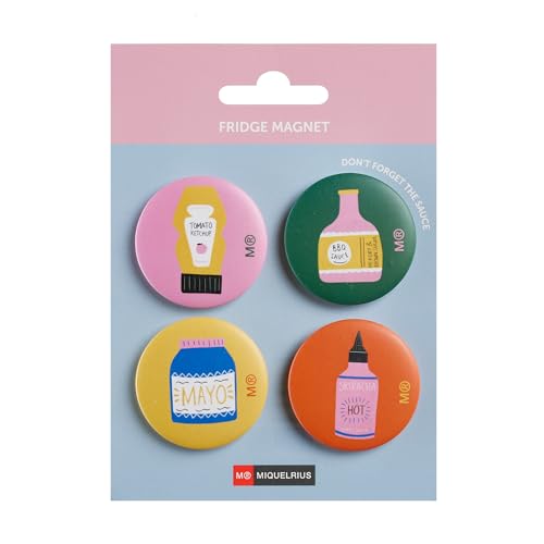 Miquelrius – kylskåpsmagneter, set, 4 runda magneter, hölje med plåt, små magneter Ø 40 mm, Foodie Lovers kollektion