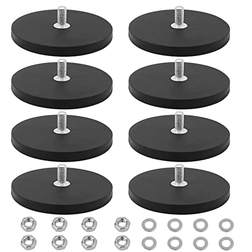8 x neodymmagneter gummerade Ø 43 mm med M6-gänga, 10 kg vidhäftningsförmåga, magnetsystem med gummirock, runda magneter med gänga för skruvar ögla eller krokar