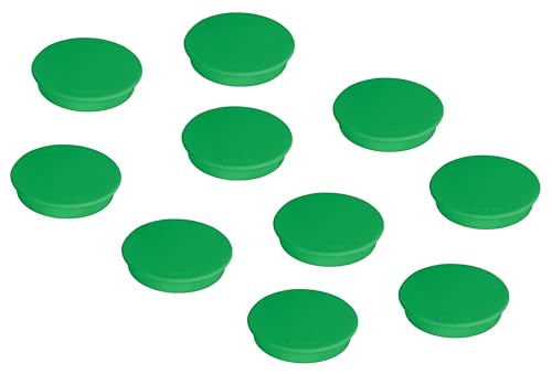 FRANKEN Magneter runda, 10 stycken, högkvalitativa självhäftande magneter för kontor, hushåll, verkstad, perfekt för whiteboards, kylskåp, plantavlor eller montrar, 24 mm, grön, HM20 02