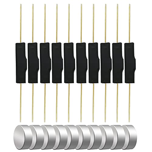 Gebildet 10 st Plast Reed Switch Reed Kontakt, Magnet nära-ansluten krets, Magnet Away-Break Circuit, Magnetic Induction Switch (3mm×14mm) Med 10st Små Multi-Use runda magneter