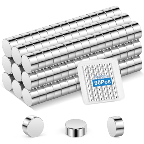 Wzone 90 st neodymmagneter, 6 x 3 mm, små magneter, runda, starka magneter för whiteboard, kylskåp, anslagstavla, foton, gör-det-själv hantverkskontor