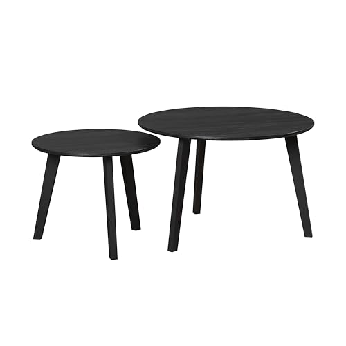 trendteam smart living – Ronin – soffbord – svart – 2 vardagsrumsbord runda – (B x H x D) 50 x 45 x 70 cm – 2 bordstabletter, massiva träfötter