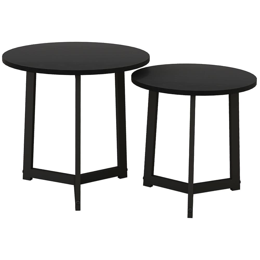 Soffbord 2-pack, runda, modern design i stål, svart, max 35 kg