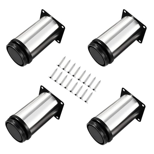 RHUAFET 8 cm x 10–20 cm runda möbelben i rostfritt stål, silver, runda möbelben, skruvade, industriella, för soffor, soffbord, skåp, 4 st