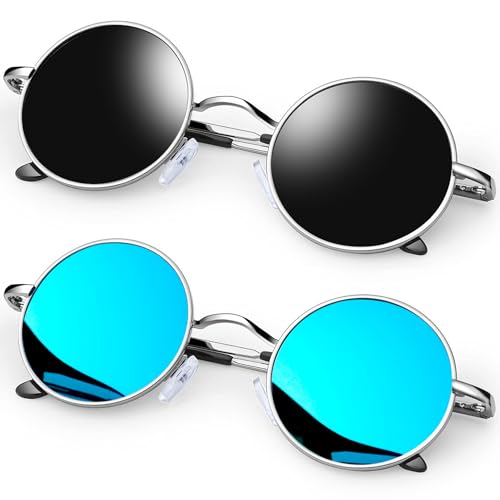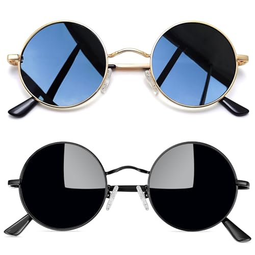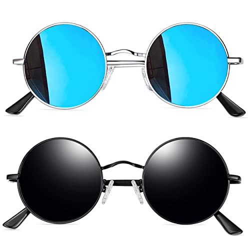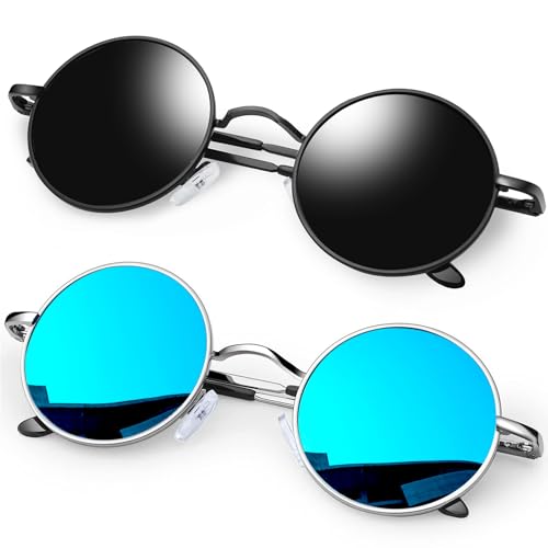 Joopin Runda Solglasögon Herr Dam Solglasögon Polariserade med UV400-Skydd und Retro Hippie Steampunk Solglasögon Män Round Sunglasses Unisex for Party Cosplay and Outdoor Svart und Blå