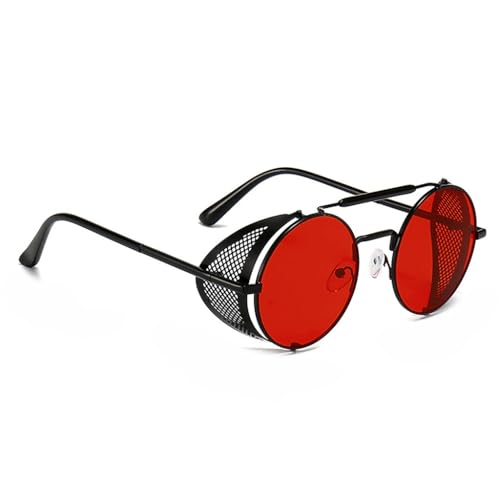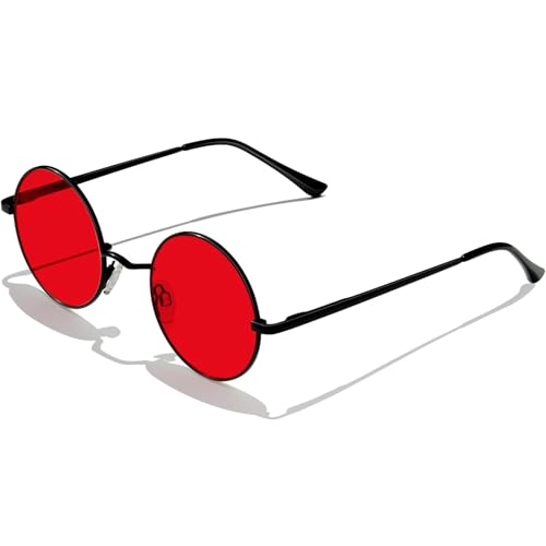 KANASTAL Röda Solglasögon Herr Dam Runda Små Sol Glasögon Män Kvinnor Red Round Sun Glasses Men Retro Halloween Cosplay Hippie Steampunk Cosplay Ultralätt UV400 - Röda Linser Svarta Bågar