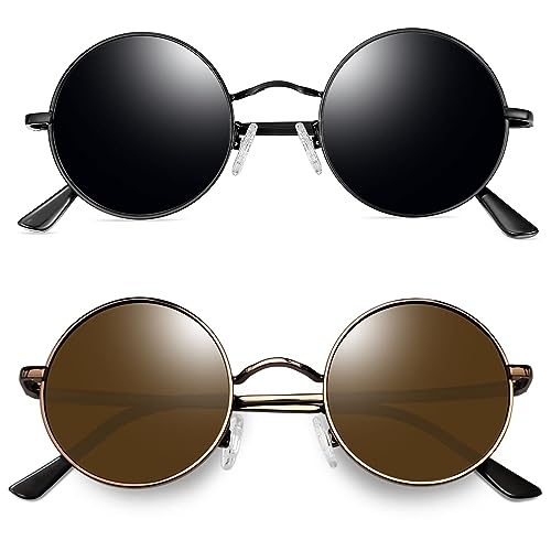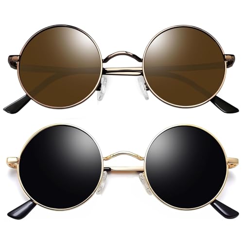 Joopin Runda Solglasögon Herr Dam Solglasögon Polariserade med UV400-Skydd und Retro Hippie Steampunk Solglasögon Män Round Sunglasses Unisex for Party Cosplay and Outdoor Svart und Brun