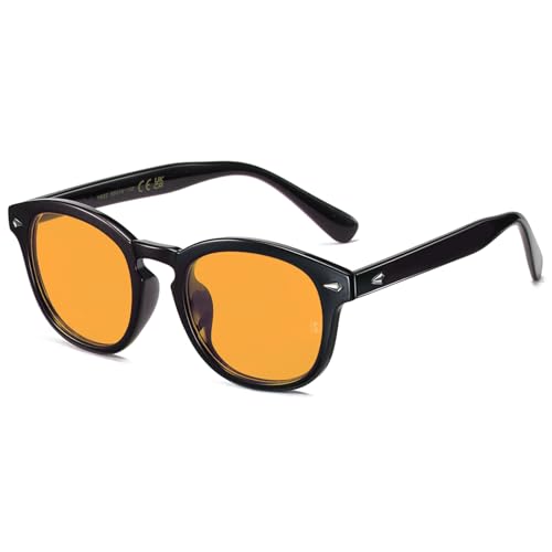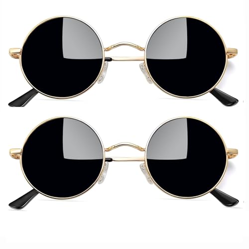 Joopin Runda Solglasögon Herr Dam Solglasögon Polariserade med UV400-Skydd und Retro Hippie Steampunk Solglasögon Män Round Sunglasses Unisex for Party Cosplay and Outdoor Guld Svart und Svart