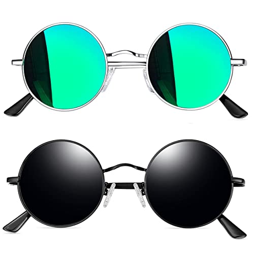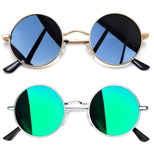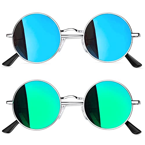 Joopin Runda Solglasögon Herr Dam Solglasögon Polariserade med UV400-Skydd und Retro Hippie Steampunk Solglasögon Män Round Sunglasses Unisex for Party Cosplay and Outdoor Grön und Blå