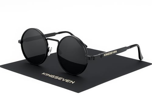 KINGSEVEN Herr och dam runda polariserade solglasögon i retrostil I vintage hippie steampunk metallram glasögon jag glasögon vintage look modern