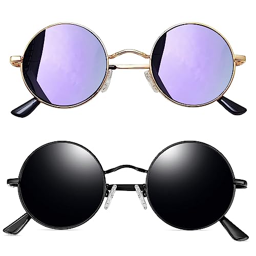 Joopin Runda Solglasögon Herr Dam Solglasögon Polariserade med UV400-Skydd und Retro Hippie Steampunk Solglasögon Män Round Sunglasses Unisex for Party Cosplay and Outdoor Guld Svart und Lila