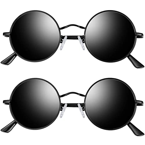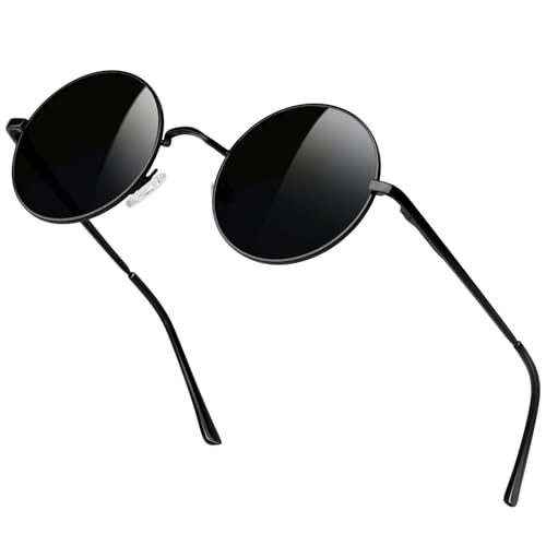 Joopin Runda Solglasögon Herr Dam Solglasögon Polariserade med UV400-Skydd und Retro Hippie Steampunk Solglasögon Män Round Sunglasses Unisex for Party Cosplay and Outdoor Svart und Svart