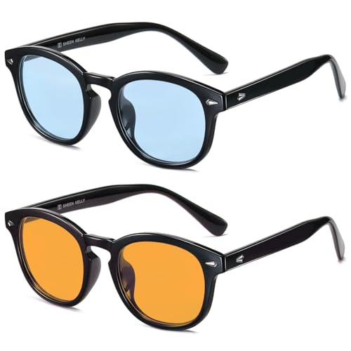 SHEEN KELLY Polarized Vintage Runda Solglasögon Herr Kvinnor Retro Oval Färgad Tonade Blå Svart Glasögon