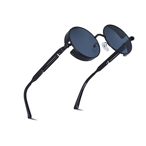 Joopin Runda Solglasögon Herr Dam Solglasögon Polariserade med UV400-Skydd und Retro Hippie Steampunk Solglasögon Män Round Sunglasses Unisex for Party Cosplay and Outdoor Guld Svart und Grå Svart