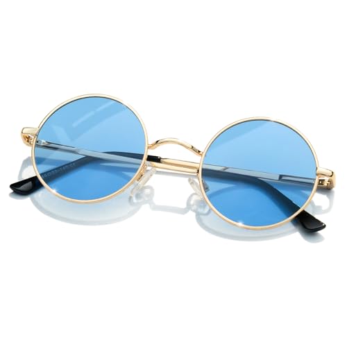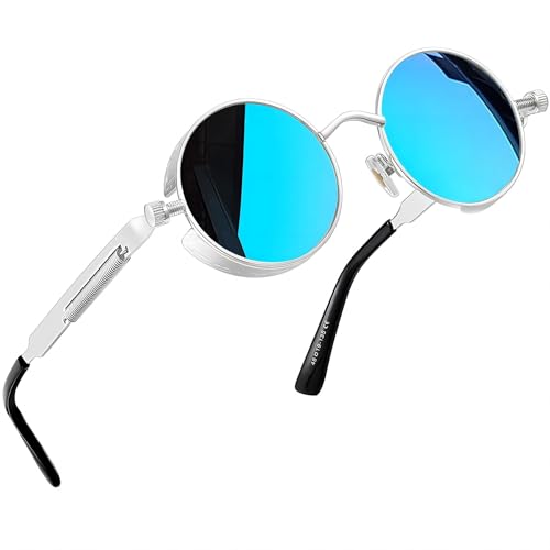 Joopin Runda Solglasögon Herr Steampunk Retro Dam Solglasögon UV400 Skydd, Polariserade Runda Män Kvinnor, Vintage Round Sunglasses Hippie Spegel Blå