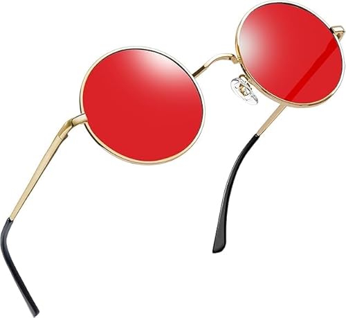 Joopin Runda Solglasögon Herr Dam med UV400-Skydd Polariserade Solglasögon Unisex und Retro Hippie Steampunk Solglasögon Män Vintage Round Sunglasses for Men and Women Röd Lins