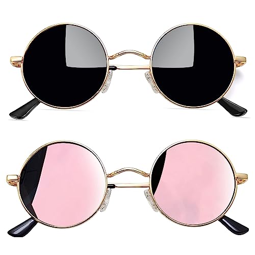 Joopin Runda Solglasögon Herr Dam Solglasögon Polariserade med UV400-Skydd und Retro Hippie Steampunk Solglasögon Män Round Sunglasses Unisex for Party Cosplay and Outdoor Guld Svart und Rosa