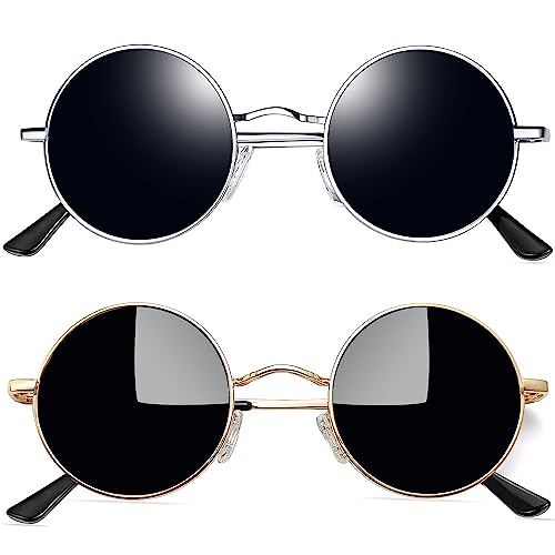 Joopin Runda Solglasögon Herr Dam Solglasögon Polariserade med UV400-Skydd und Retro Hippie Steampunk Solglasögon Män Round Sunglasses Unisex for Party Cosplay and Outdoor Guld Svart und Silver Svart