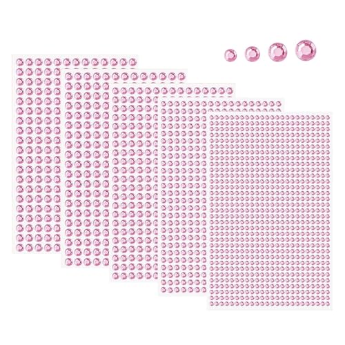 Självhäftande glitterstenar 2000+ självhäftande strass 3/4/5/6 mm runda stenar för nageldekoration och ansiktsmakeup (rosa)
