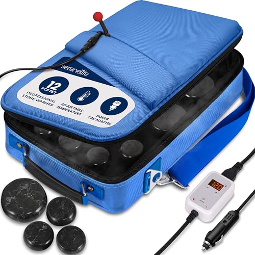SereneLife Hot Stones Massage Set med Värmare – Uppvärmda Runda Basalt Stenar Kit 12 stora & små Stenar, Digital Kontroll för Spa & Hem