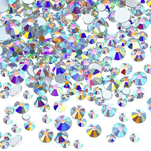 TOAOB 800 st blandad storlek Rhinestone AB kristall diamanter platt baksida akryl strass stenar runda för hantverk naglar dekoration tillbehör för nagelkonst, CZMM0017