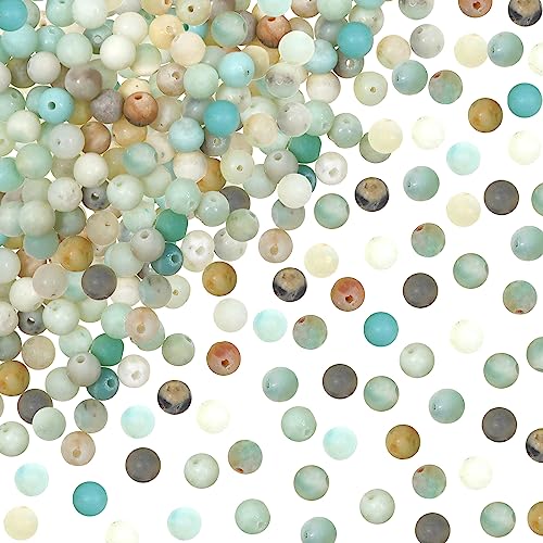 TOAOB 100 st naturliga stenpärlor, 6 mm, naturliga frostade amazonitpärlor, runda lösa stenar, energipärlor, för smyckestillverkning, halsband, armband, örhänge
