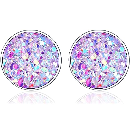 Runda örhängen och örhängen för kvinnor - 925 silverörhängen med färgade kubiska zirkonier, bohemiska örhängen med färgglada glittrande runda platta stenar, present till kvinnor, Universele grootte,
