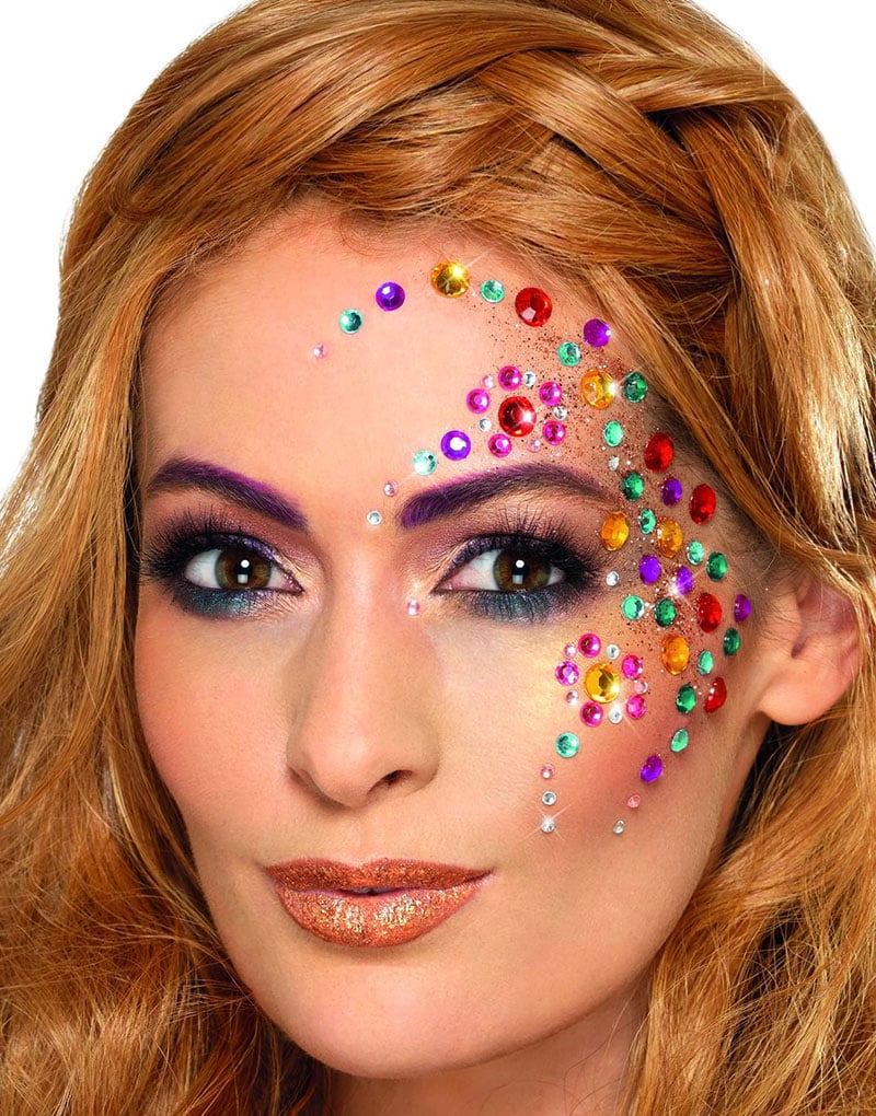 100 st Regnbågsfärgade Ansikts-Juveler med Runda Stenar