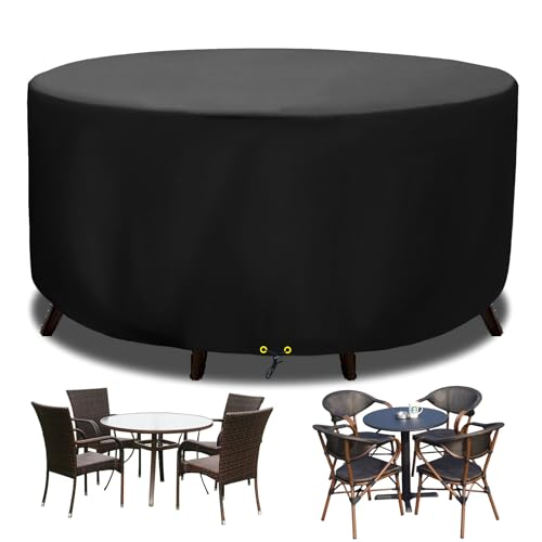 Zettum Skyddsöverdrag för rädgårdsmöbler 72 tum – 600D Runt överdrag för utebord, vattentätt och extra slitstarkt, möbelskydd för trädgårdsbord och stolar utomhus – 185 × 185 × 73 cm