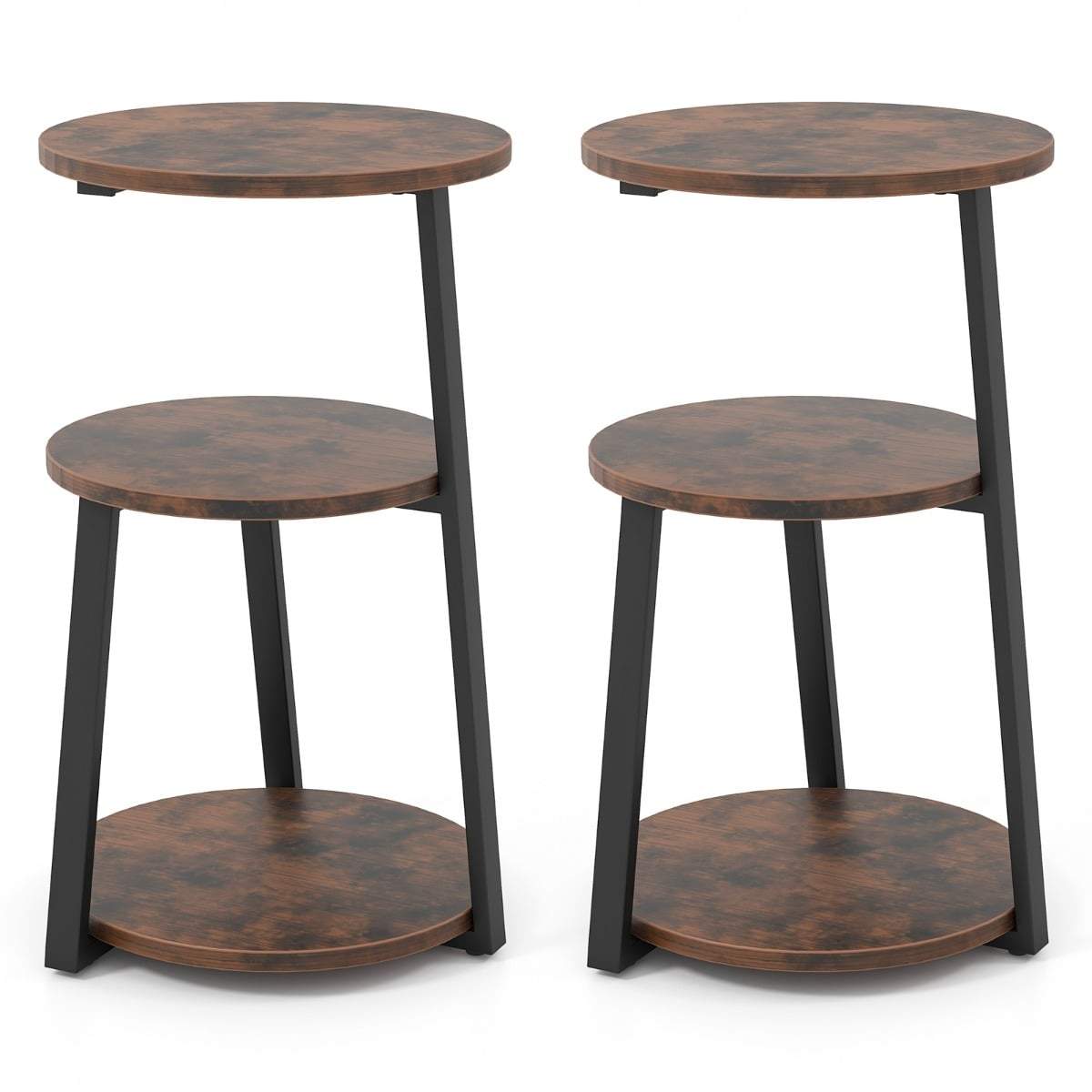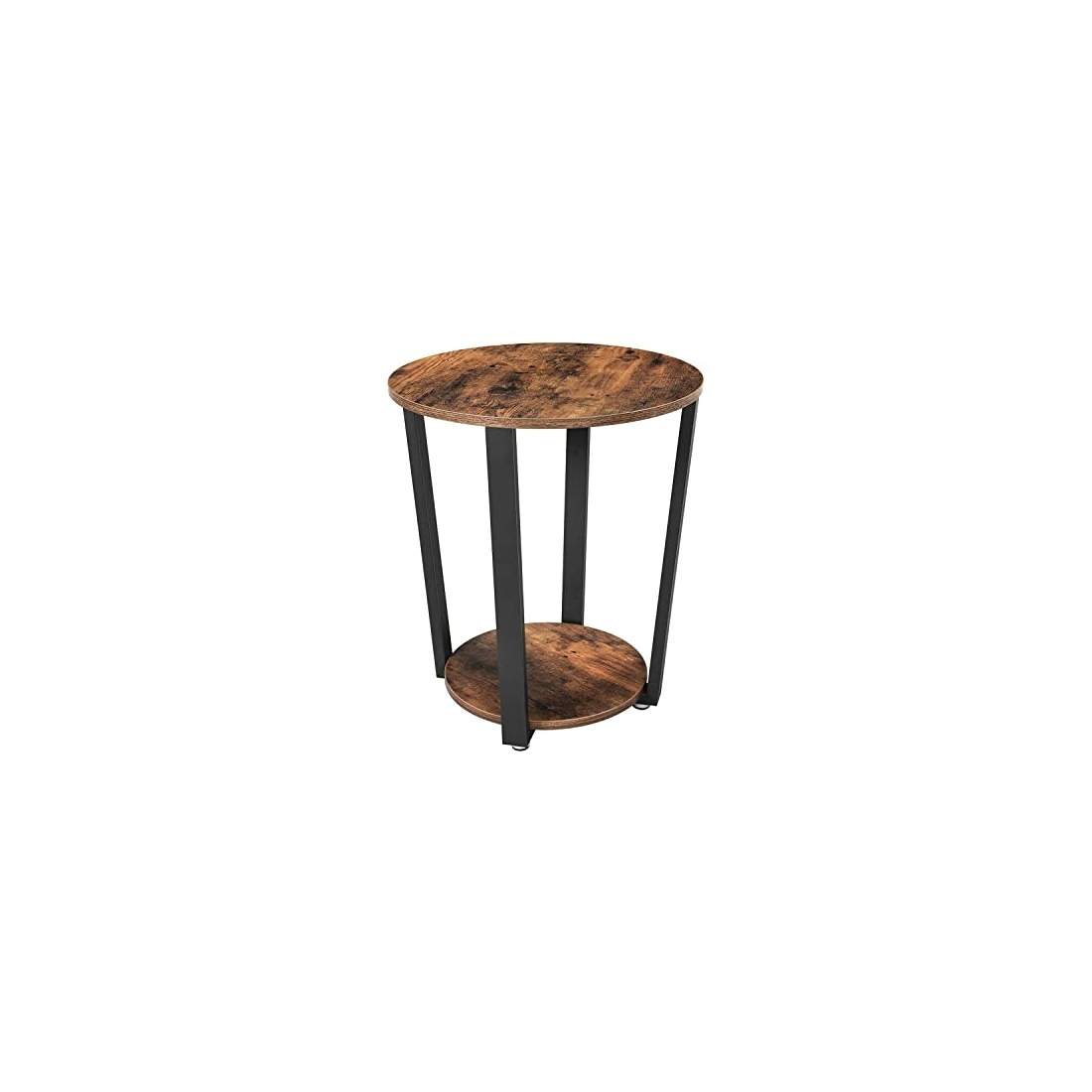 Runt sidobord med öppen hylla & Metallram 2-vånings Accent Bordsoffa Bord-Rustik Brun