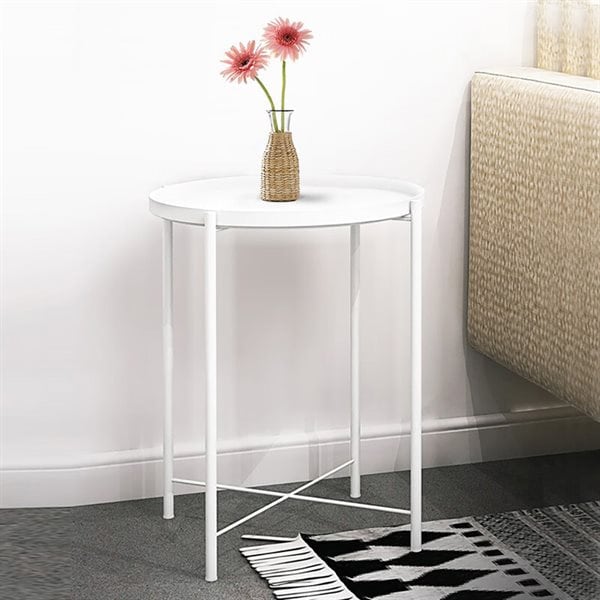 Runt sidobord i pulverlackerad metall 44cm - Vit