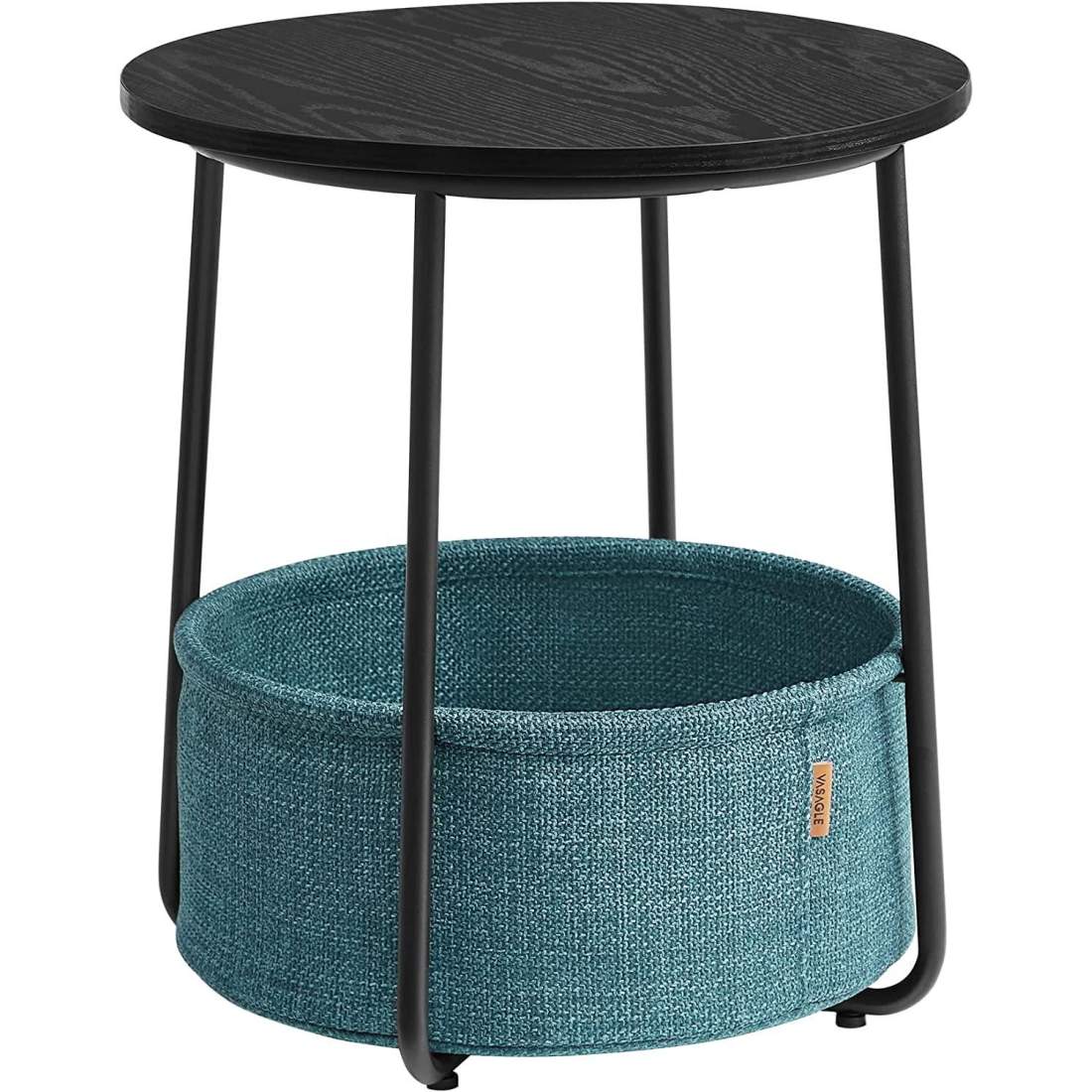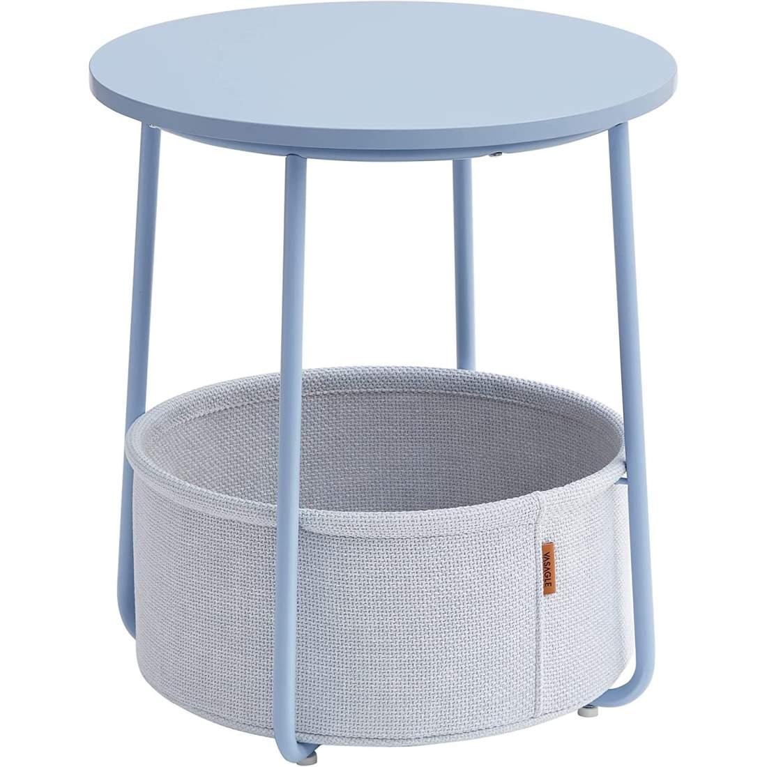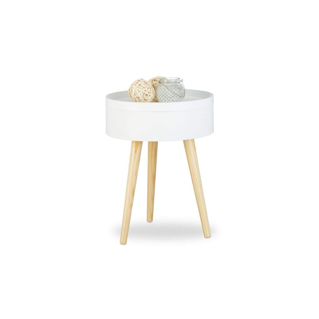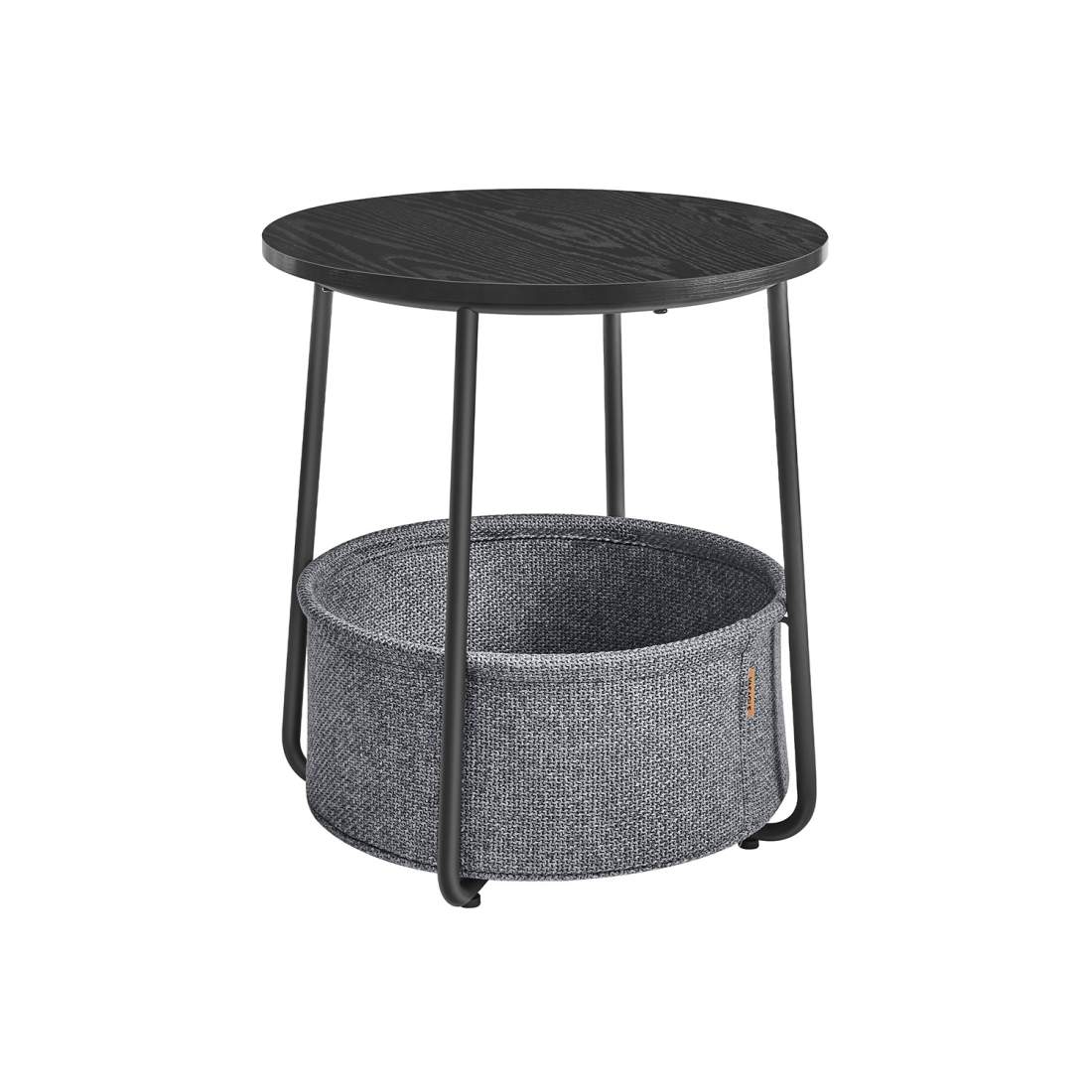 Runt sidobord med tygkorg, vit/beige, modern stil