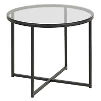 Actona Cross runt sidobord metall svart och rökfärgat glas Ø55 cm