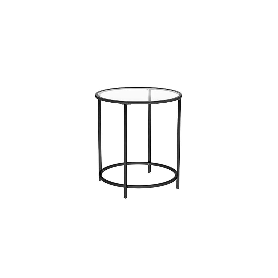 Sidobord runt soffbord med glasbordsskiva, metallstomme, soffbord, sängbord för vardagsrum, sovrum, svart, Ø48 x 54,7 cm