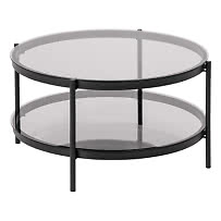 Actona Bayonne runt soffbord metall svart och glas Ø79 cm